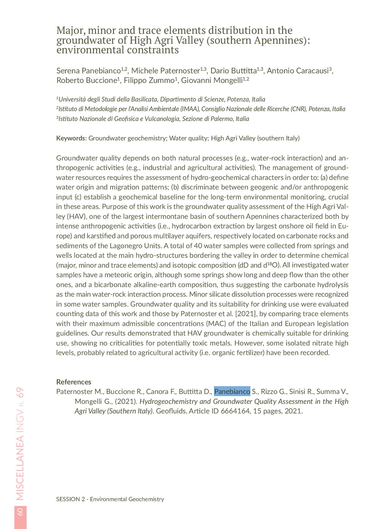 Panebianco S.;Paternoster M.;Buttitta D.;Zummo F.;Mongelli G