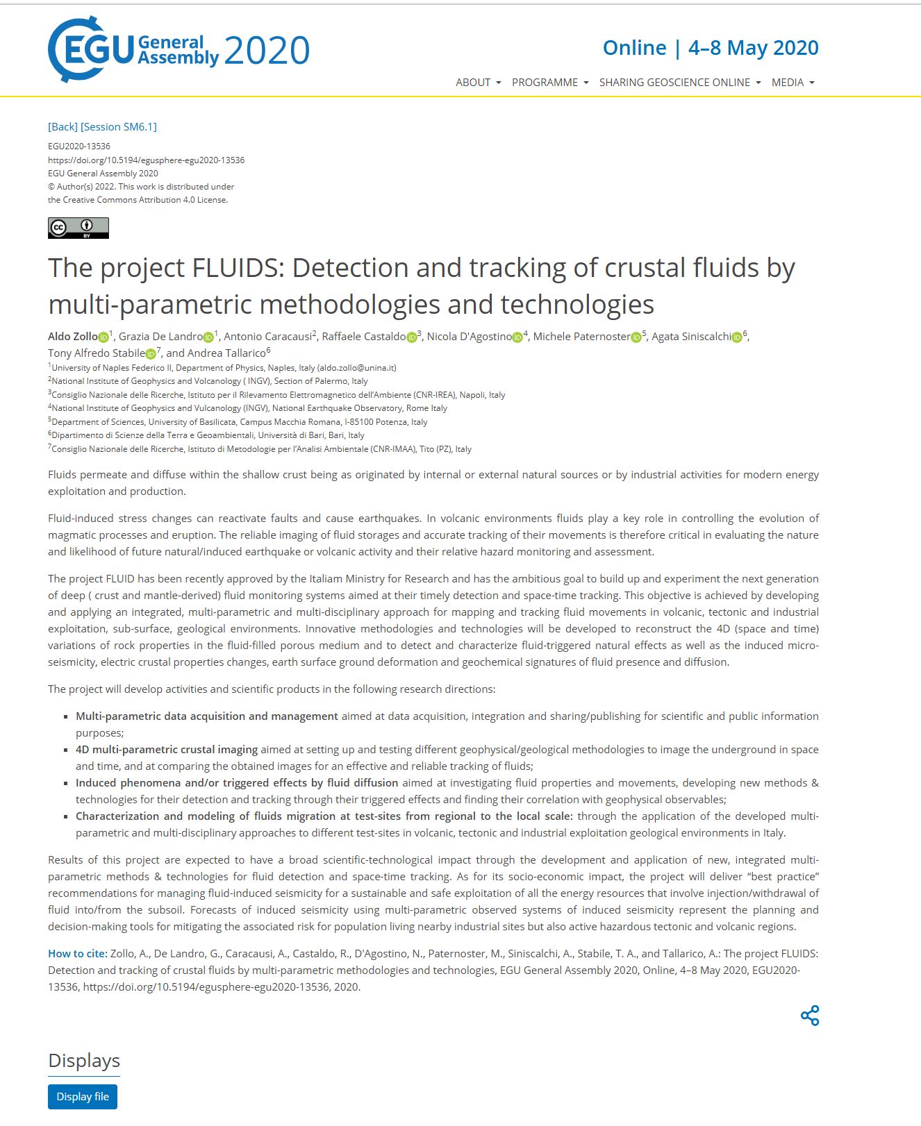 The project FLUIDS: Detection and tracking of crustal fluids by multi-parametric methodologies and technologies