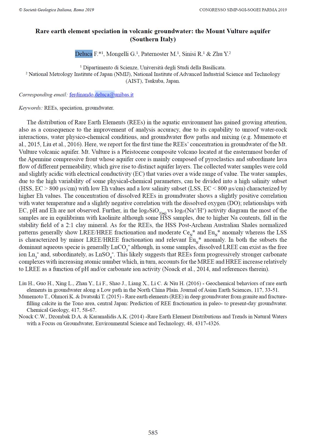 Rare earth element speciation in volcanic groundwater: the Mount Vulture aquifer (Southern Italy).