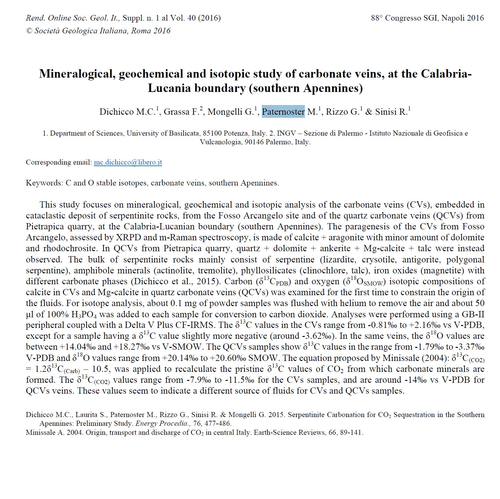 Mineralogical, geochemical and isotopic study of carbonate veins, at the Calabria-Lucania boundary (southern Apennines).
