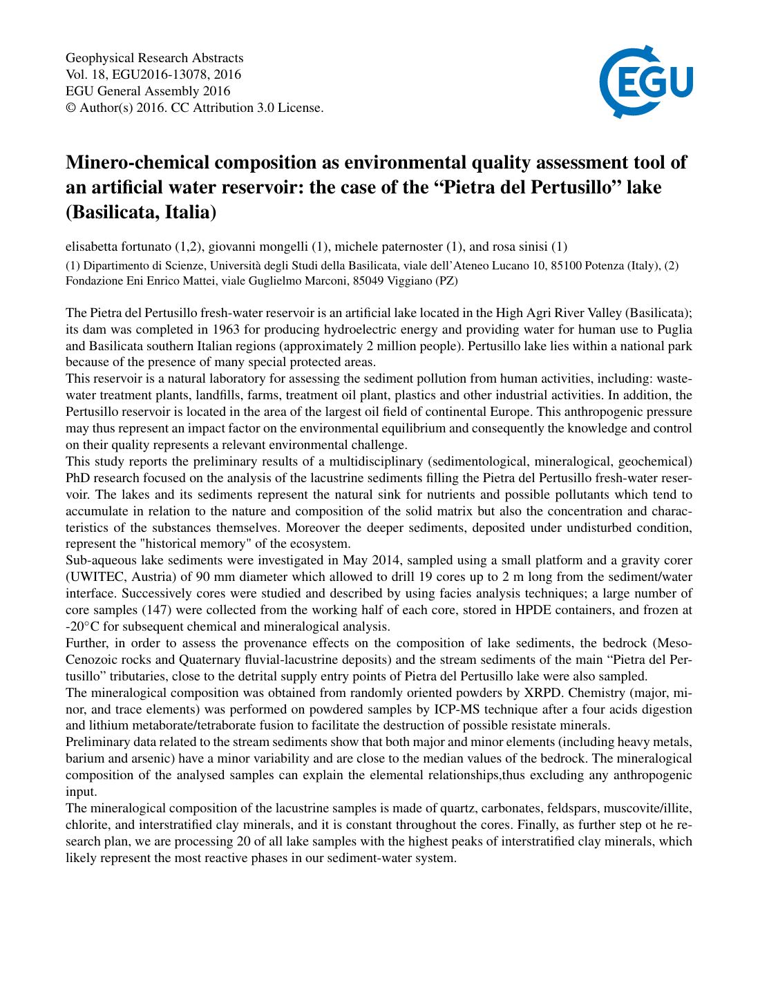Minero-chemical composition as environmental quality assessment tool of an artificial water reservoir: the case of the “Pietra del Pertusillo” lake (Basilicata, Italia).